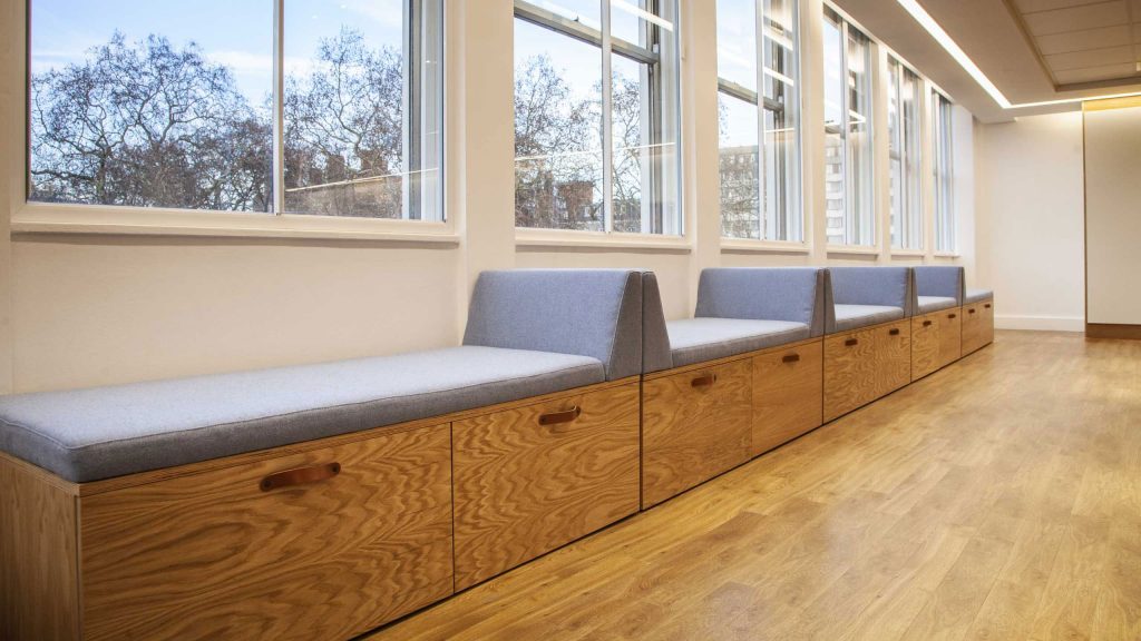 In workplace design, we believe variety is key. The space should accommodate an array of working preferences and furnishings, and provide a choice of work-based settings, including: small desks for solo working, larger tables for team projects, breakout spaces for informal catch-ups, private spaces for formal meetings, quiet places for concentration, and lounge areas to enjoy a coffee and chat. People can move around, choosing to work in the space ideally suited to their needs, and at the same time retaining a personal desk as a base. While a desk might remain the focal point of an individual’s work, having a choice of workspace environments encourages collaboration across teams. Moreover, by promoting movement and creating a less sedentary way of working, a choice of workspaces will promote an employee’s mental health and overall well-being.